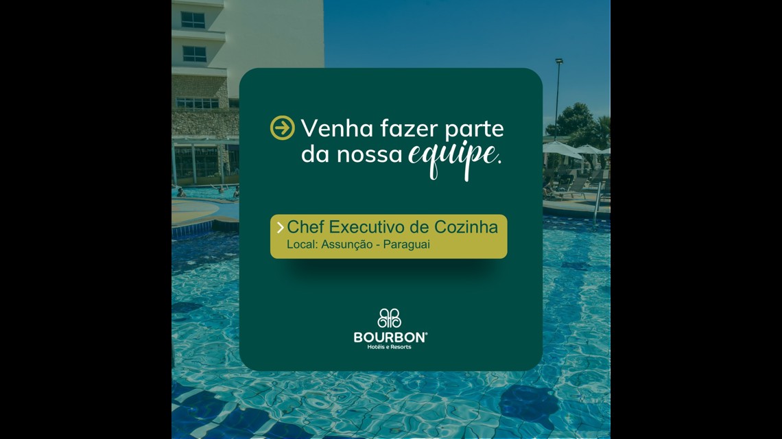 A Bourbon Gastronomia está buscando um Chefe Executivo de Cozinha, para compor o time do Gran Bourbon Asunción Hotel. Venha fazer parte da equipe que preza pela excelência em bem - servir, oferecendo cardápios das mais conceituadas cozinhas mundiais.