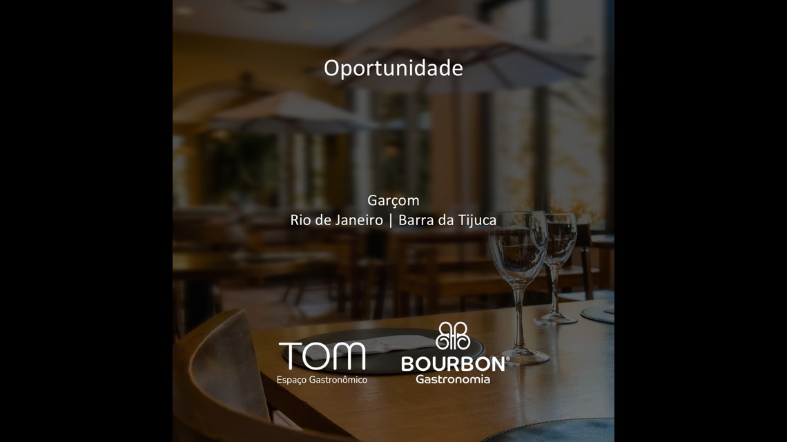 A Bourbon Gastronomia está buscando um Garçom, para compor o time da Bourbon Rio de Janeiro, localizado na Barra da Tijuca, cidade do Rio de Janeiro/RJ. Venha fazer parte da equipe que preza pela excelência em bem - servir, oferecendo cardápios das mais conceituadas cozinhas mundiais.