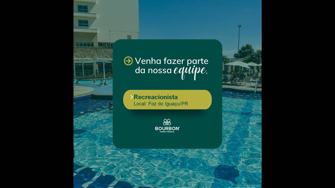 A Bourbon Hospitalidade, uma das empresas líderes no mercado hoteleiro, está buscando um Recreacionista, para a Bourbon Thermas Eco Resort Cataratas do Iguaçu. Este profissional será responsável por executar tarefas diárias do departamento de lazer, como jogos, brincadeiras, músicas e atividades físicas voltadas aos hóspedes, cumprindo as normas e procedimentos internos e externos, bem como obedecendo às políticas gerais da Bourbon Hotéis & Resorts.