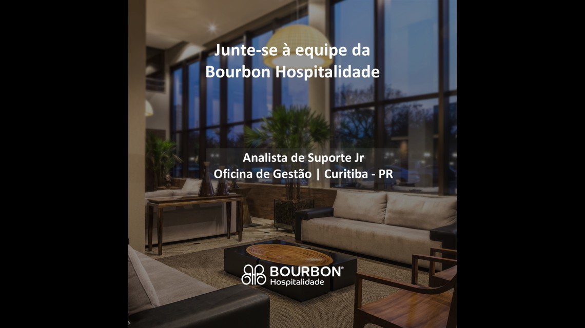 A Bourbon Hospitalidade, uma das empresas líderes no mercado hoteleiro, está buscando um Analista de Suporte Jr, para o Escritório Corporativo Oficina de Gestão, localizado em Curitiba - PR. Este profissional será responsável por realizar ações de suporte técnico para soluções relacionadas aos sistemas e ativos de informática, incluindo a instalação, manutenção e monitoramento de redes e equipamentos, cumprindo as normas e procedimentos internos e externos, bem como obedecendo às políticas gerais.