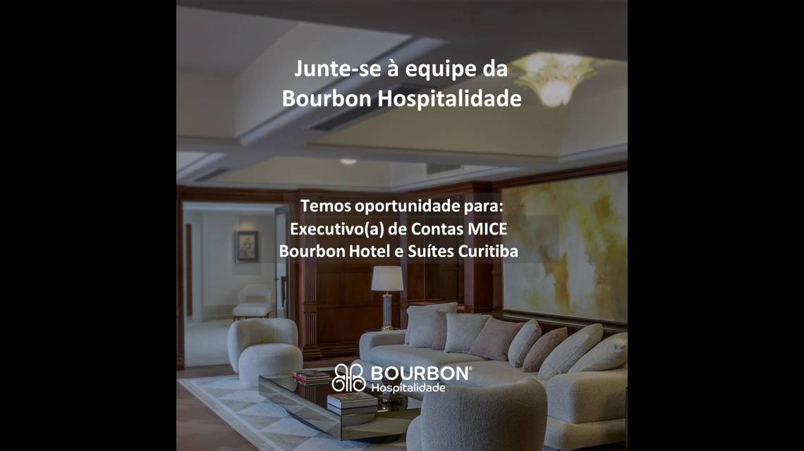 A Bourbon Hospitalidade, uma das empresas líderes no mercado hoteleiro, está buscando um Executivo(a) de Contas MICE, para a Bourbon Hotel e Suítes Curitiba. Este profissional será responsável por desenvolver negócios no segmento de eventos corporativos, fortalecendo parcerias e ampliando oportunidades para reuniões, conferências, incentivos e eventos realizados no hotel, cumprindo as normas e procedimentos internos e externos, bem como obedecendo às políticas gerais.